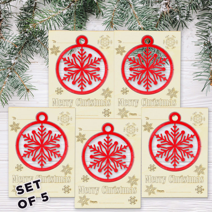 Christmas Wooden Card 4.5x6 inches with Pop-Out Ornament (Set of 5)
