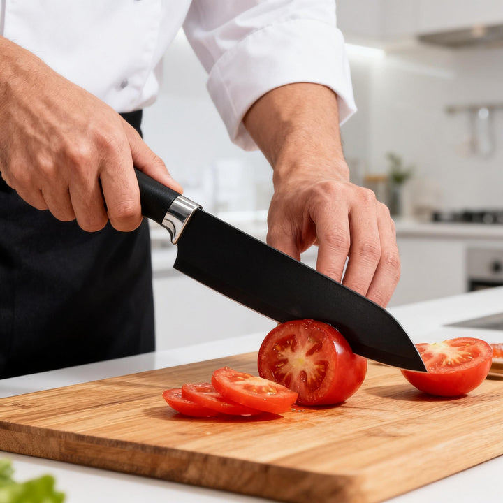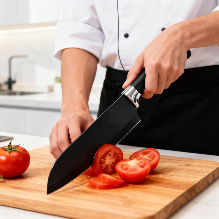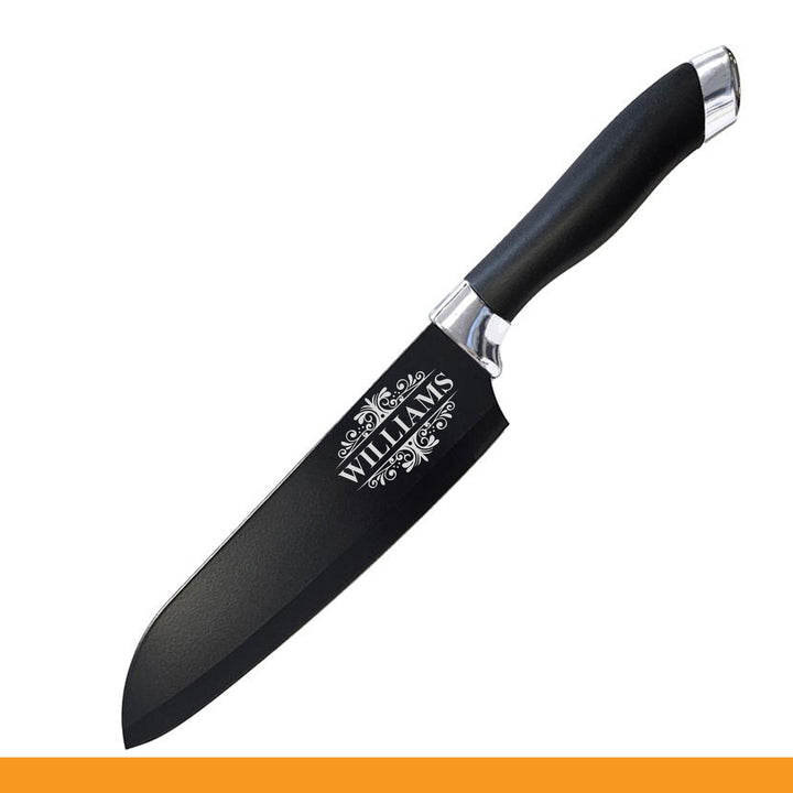 Experience precision with our Custom Black Knife, featuring a sleek design engraved with your last name and unique artwork. This ultra-light, razor-sharp knife is engineered for optimal performance, whether in the kitchen or outdoors. Its ergonomic handle ensures comfortable handling, making it an ideal choice for both professional chefs and everyday cooks. A perfect blend of functionality and personal style, this knife makes an excellent gift or addition to your collection.